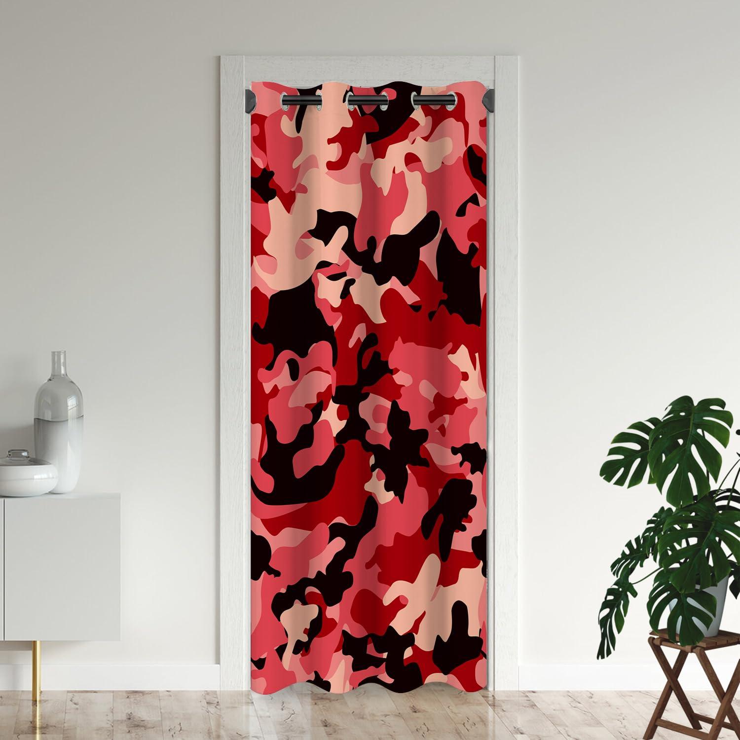- PACKAGE 1 panel Camo Red print door curtain for doorway window. which can protect your privacy, beautify your room and increasing the sense of design. Silver metal grommets on topInner diameter1.8" / Outer diameter 2.7". Easy to hang, and slide smoothly.