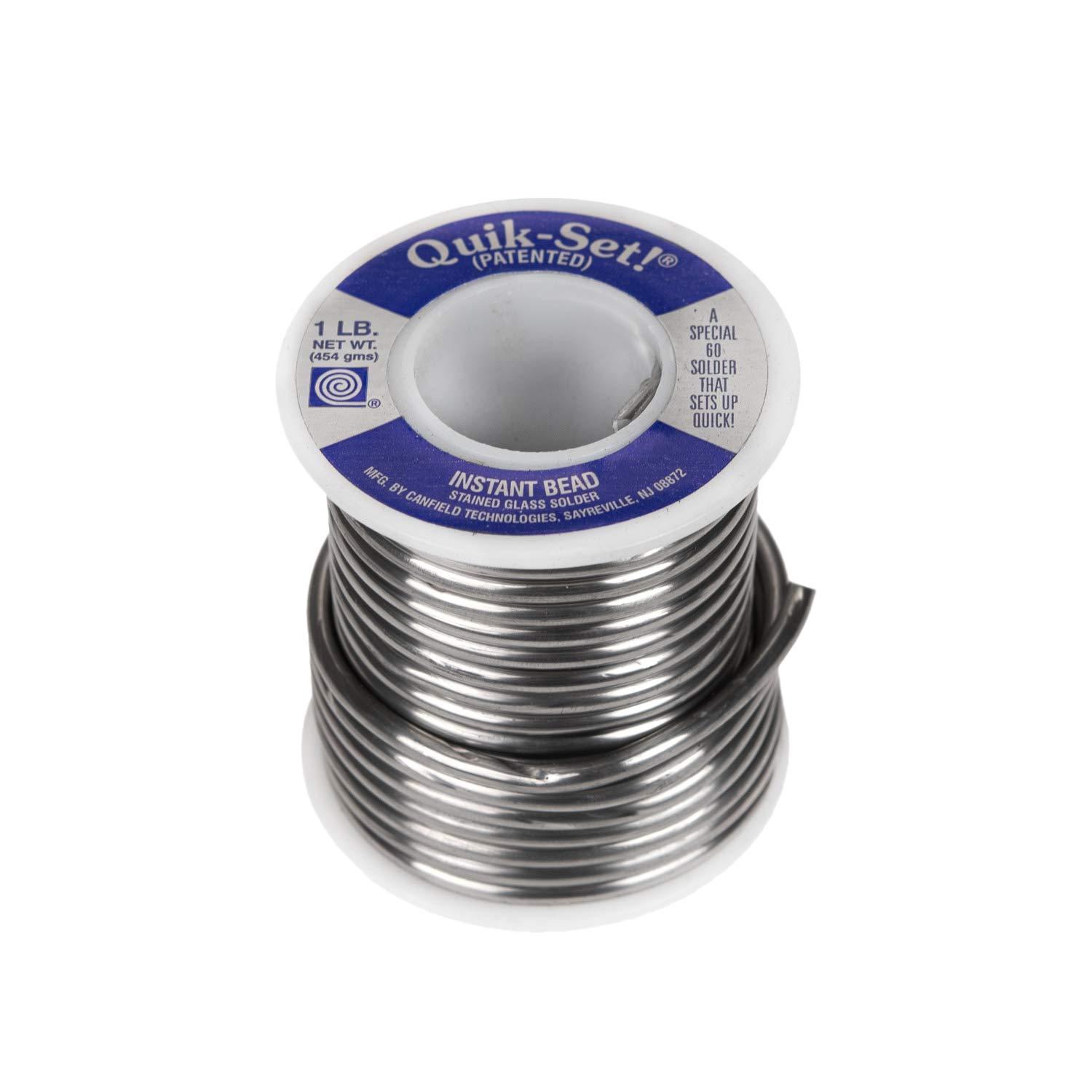 This solder was developed for the stained glass production solderer as well as the artisan. QUIK-SET! makes a perfect bead with one pass of the iron, and the bead sets up instantly with a silvery shine. Melting temperature: 361 - 392F. Convenient 1 lb. spool.