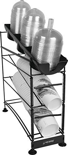 This San Jamar Wireworks Cup and Lid Dispenser is the ultimate solution for keeping your beverage service area organized and efficient. Whether you run a bustling restaurant, a fast-food joint, or a busy kitchen, this versatile dispenser is designed to make your life easier. Adaptable Cup Capacity: This sleek and sturdy cup dispenser is designed to accommodate a wide range of cup sizes, ranging from 8 to 44 ounces. No matter if you're serving up hot coffee, cold soda, or anything in between, the Wireworks Cup and Lid Dispenser can handle it all. It works with paper, plastic, and foam cups, so you won't have to worry about stocking separate dispensers. Stay-Put Suction Cup Feet: Tired of your dispensers sliding around and causing chaos during the rush hours? Say goodbye to those troubles! Our dispenser is equipped with robust suction cup feet that firmly secure it to your countertop. This ensures it stays put, even when it's at peak dispensing action. Space-Saving Design: The three-tier design of the San Jamar Wireworks Dispenser is a game-changer for tight counter spaces. Don't let clutter slow you down; this dispenser streamlines your cup and lid organization, making it a breeze to find what you need in the heat of the moment. User-Friendly Functionality: Loading cups has never been simpler! Our dispenser boasts an adjustable dispensing mechanism that allows you to load cups from either the back or the front, saving you time and effort. You won't find yourself fumbling when the dispenser is in use; it's designed for smooth, easy operation.