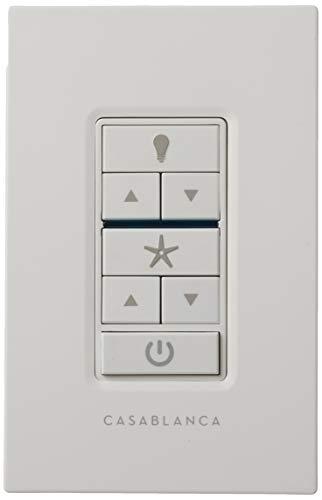 The Casablanca Wall Control provides four fan speeds and full-range light dimming. With simple arrow buttons to control the fan and light, the wall control also features a snap on cover to hide exposed screws for a clean, seamless look. *For use with pull chain fans, Casablanca Universal Receiver 99199 required (sold separately). Also compatible with new or existing Casablanca fans with controls.