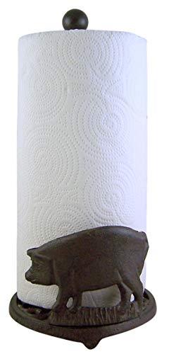 Size: Base - 6 1/2 Inch Diameter x Height 13 Inch, Material - Cast Iron, Holds 1 Roll of Paper Towel (Not Included), Some Assembly Required - Rod Screws into Base and Knob on Top Screws off to Change Paper Rolls, Great Rustic Pig Decor for Your Kitchen or Dining Table.