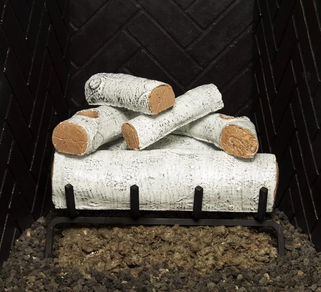 AMS FIREPLACE INC. Ceramic Gas Logs | Vented | Natural Gas Only | Peterson Real Fyre | RH Peterson | with/Without Burner (Logs ONLY - NO Burner, White Birch 24" | W-24)