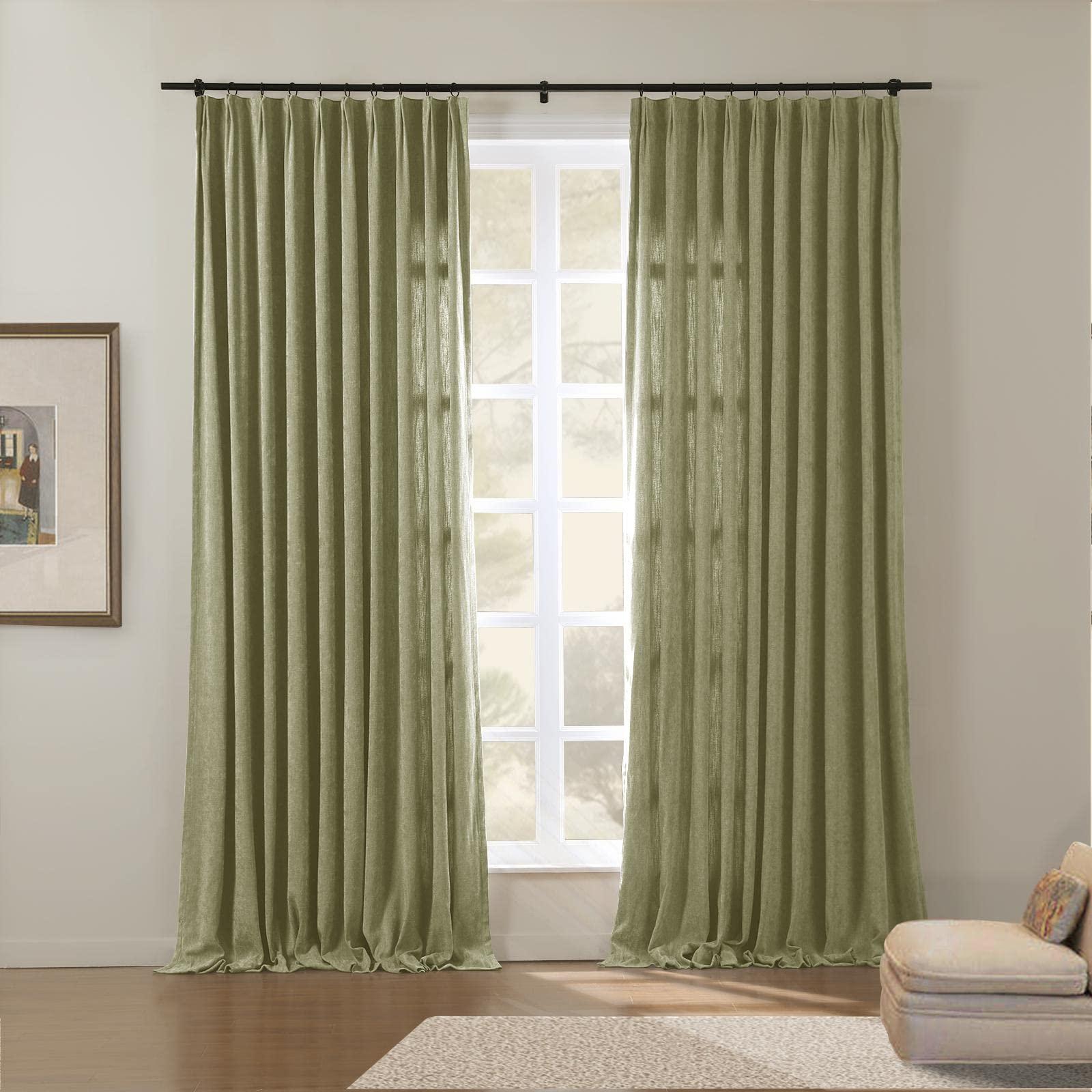 - TAILOR PLEATED TOP: Sewing pleats add fullness of curtain, beautiful and elegant. Easy to install, work for rod or track. Metal hooks included, clip rings not included. 10 pleats for 50" wide.