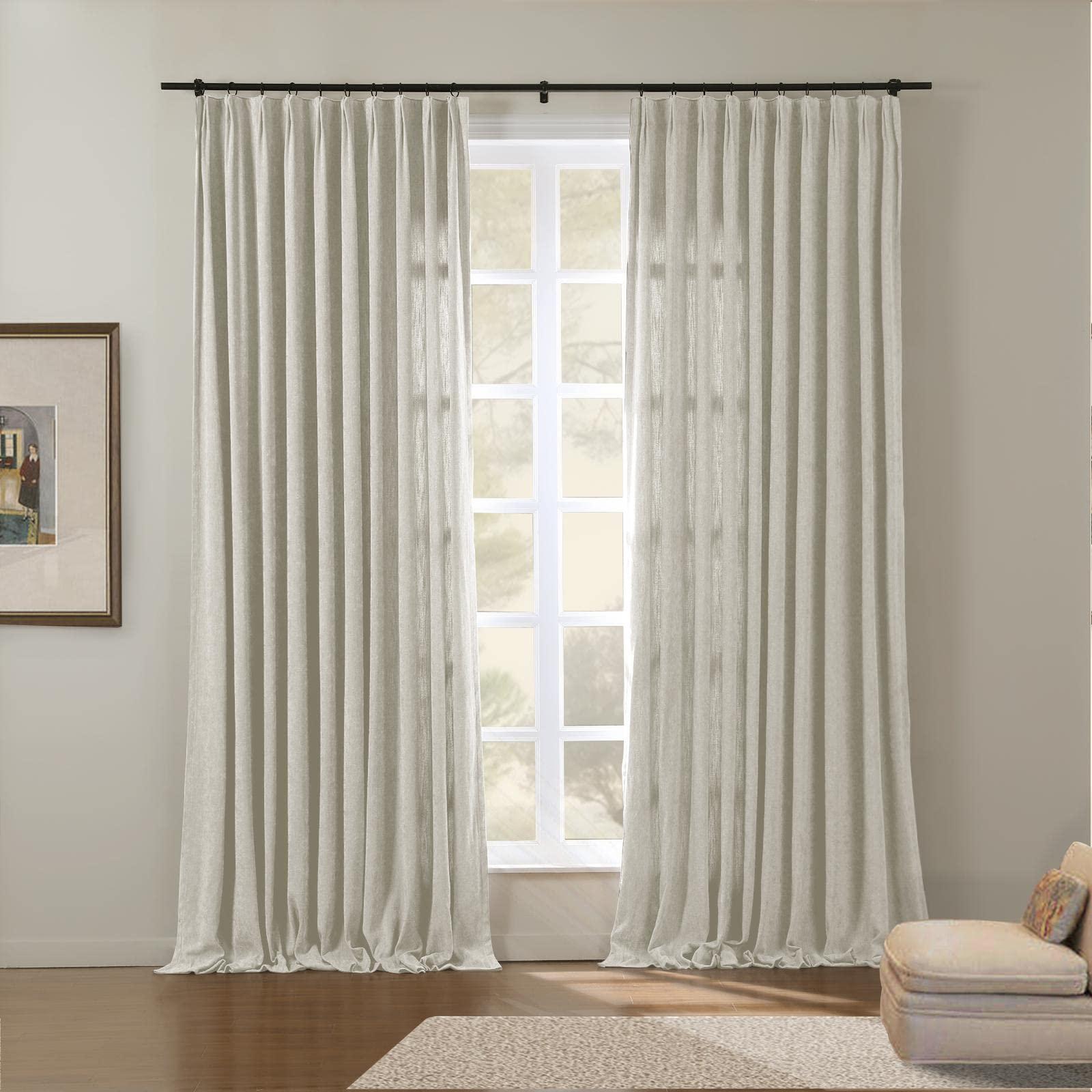 - TAILOR PLEATED TOP: Sewing pleats add fullness of curtain, beautiful and elegant. Easy to install, work for rod or track. Metal hooks included, clip rings not included. 10 pleats for 50" wide.