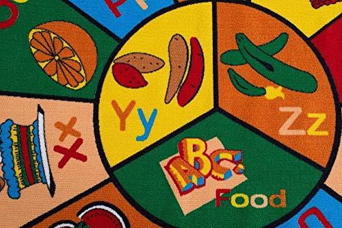Champion Rugs Champion Rugs Kids Area Rug ABC Food Fruits Apple Banana Ice Cream Learning/ Playtime Non Slip Gel Back Carpet (8 Feet X 8 Feet Round)