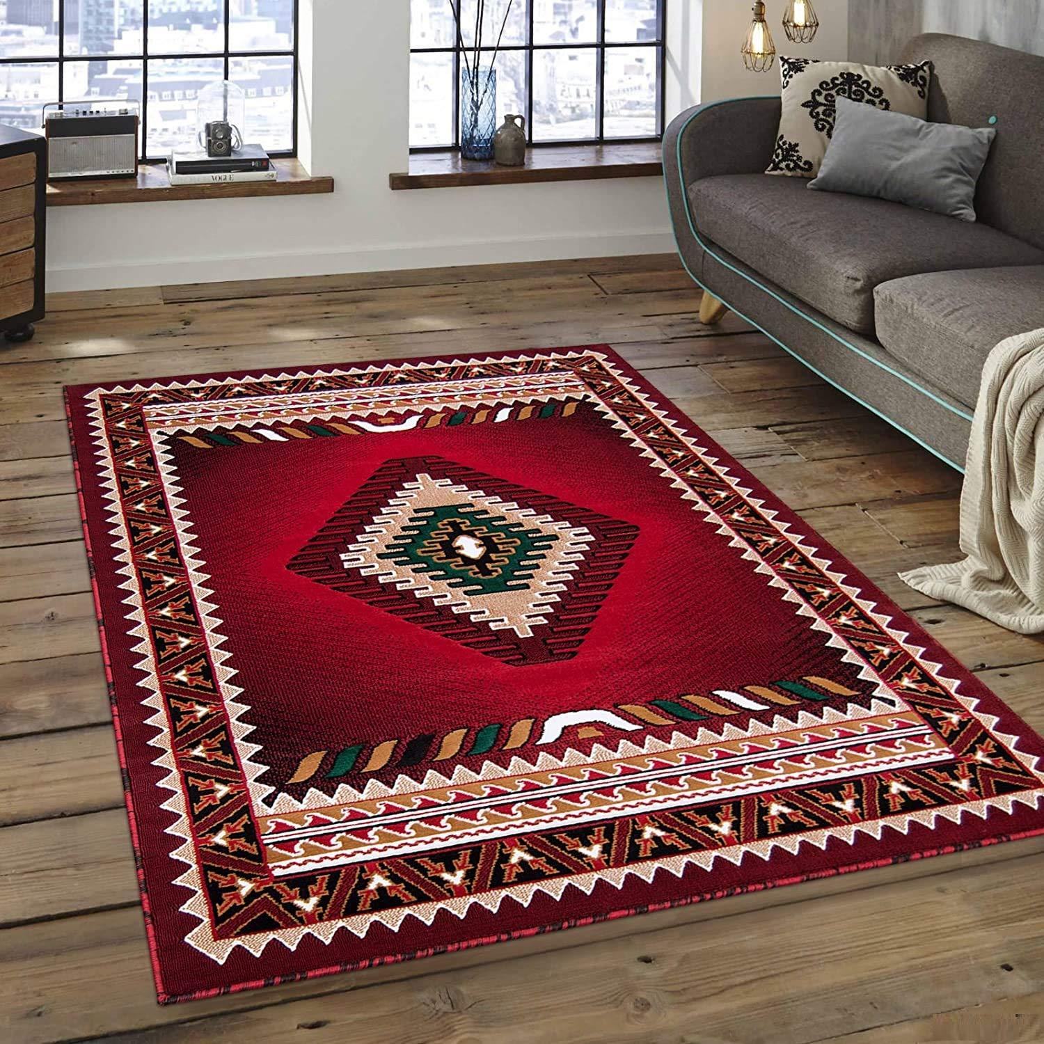 Our area rug collection features an assorted mix of traditional, transitional, Native American, modern, contemporary, abstract, and novelty area rugs in various sizes. Featuring exclusive styles only offered through our collection. The area rugs are a great value and an excellent addition to any room in any household. These rugs are stain resistant and built to last. If you are searching for a great value, without compromising style or quality, then our rug collection is the way to go.