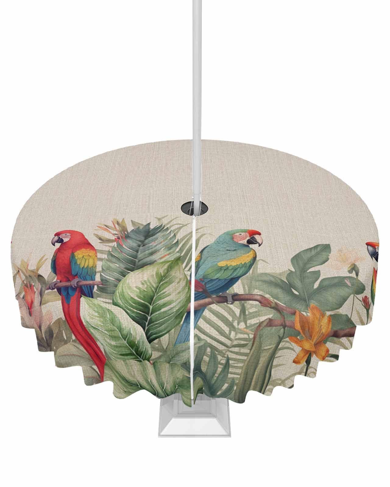- Green Palm Leaves on Burlap Outdoor Tablecloth with Umbrella Hole: Tablecloths is made of polyester fabric, which is comfortable and durable, safe and skin-friendly. The perfect hemming makes table cloth reusable, and suitable for all seasons. The surface of table cloths is made of material, which can prevent juice/water/drink/soup/wine dirty tabletop, and a quick wipe with a napkin and damp cloth, keeps the tabletop clean.