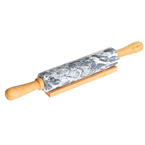 CHEFMADE 18-Inch Marble Rolling Pin with Wooden Handles and Cradle, Non-Stick (Gray and White)