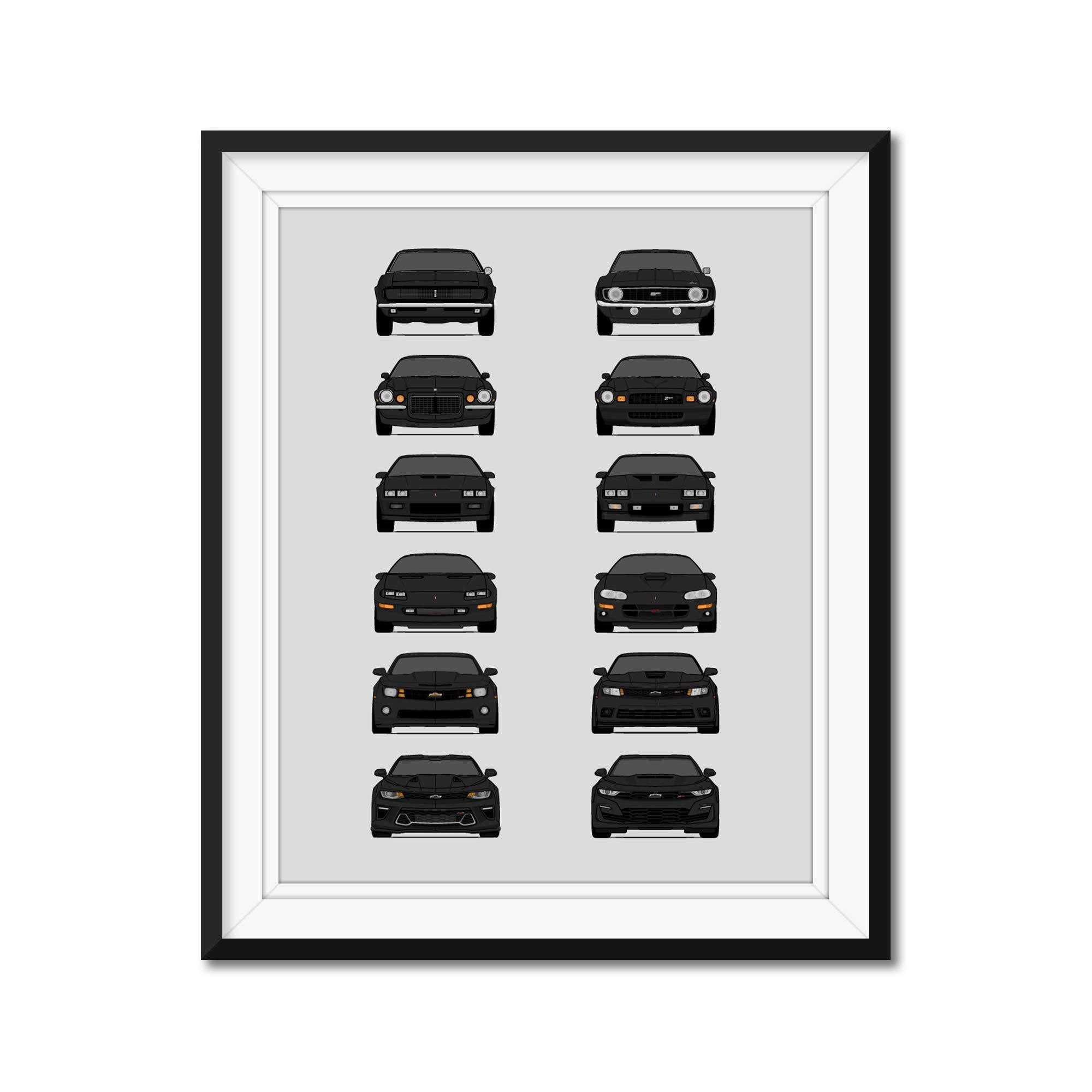 Custom Car Posters Custom Car Posters History of Chevy Camaro Generations and Handmade Print of Camaro from 1967 to Present - Black, 11x14\" Satin Print (Unframed) - Gift for Car Enthusiast