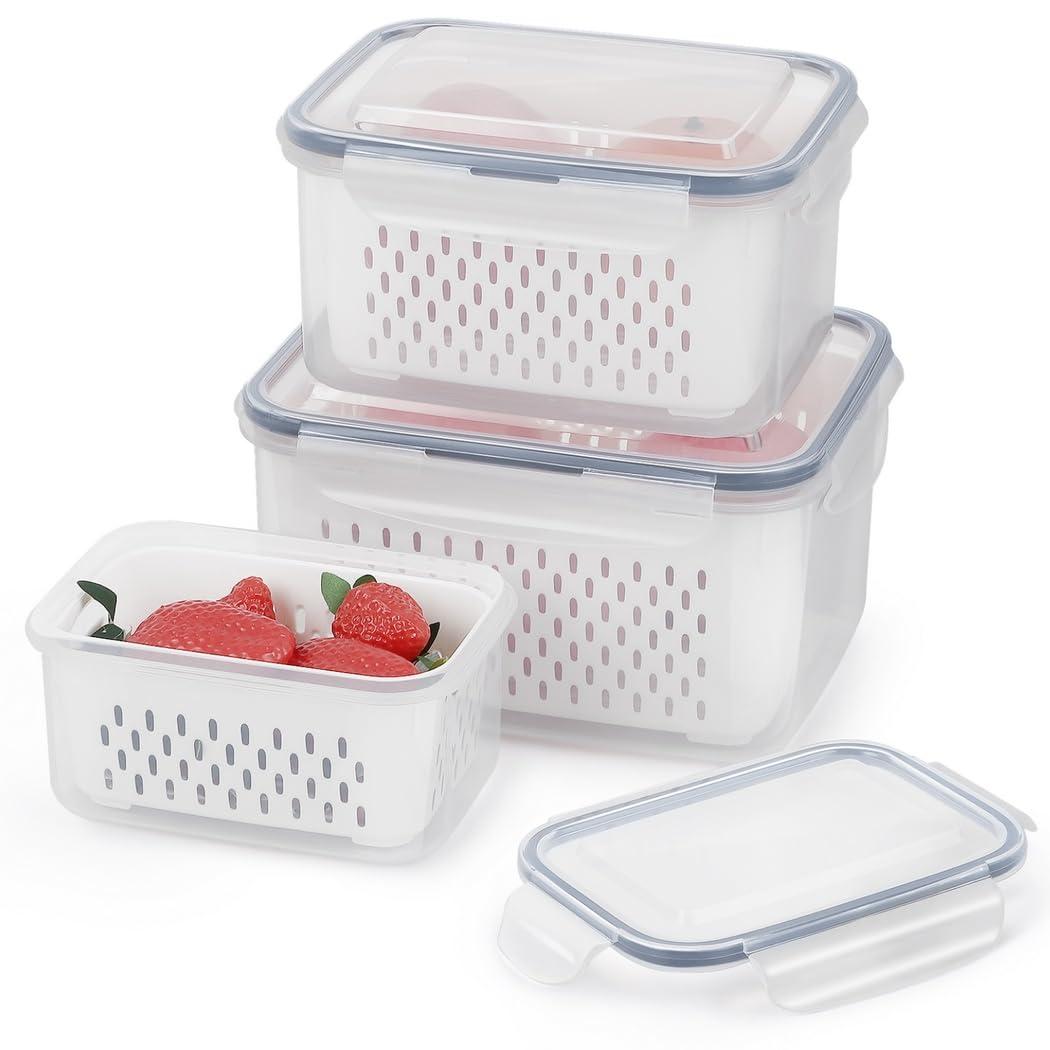- Spacious Variety SizesOur 3-pack fruit storage offer containers in assorted dimensions, with the biggest measuring 7.7 x 5.9 x 4.5 inches and the smallest at 5.5 x 3.7 x 3.1 inches. ideal for categorizing various items, these containers ensure that food types remain separate, maintaining their individual flavors without cross-contamination. experience a tidy fridge with optimized space.