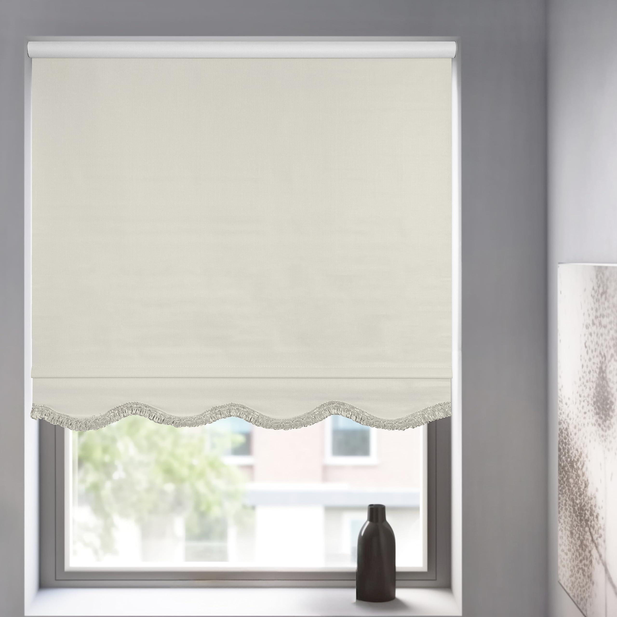 - Custom Blackout Window Shade - Choose your custom size, scallop fringe finish for a decorative finish.
