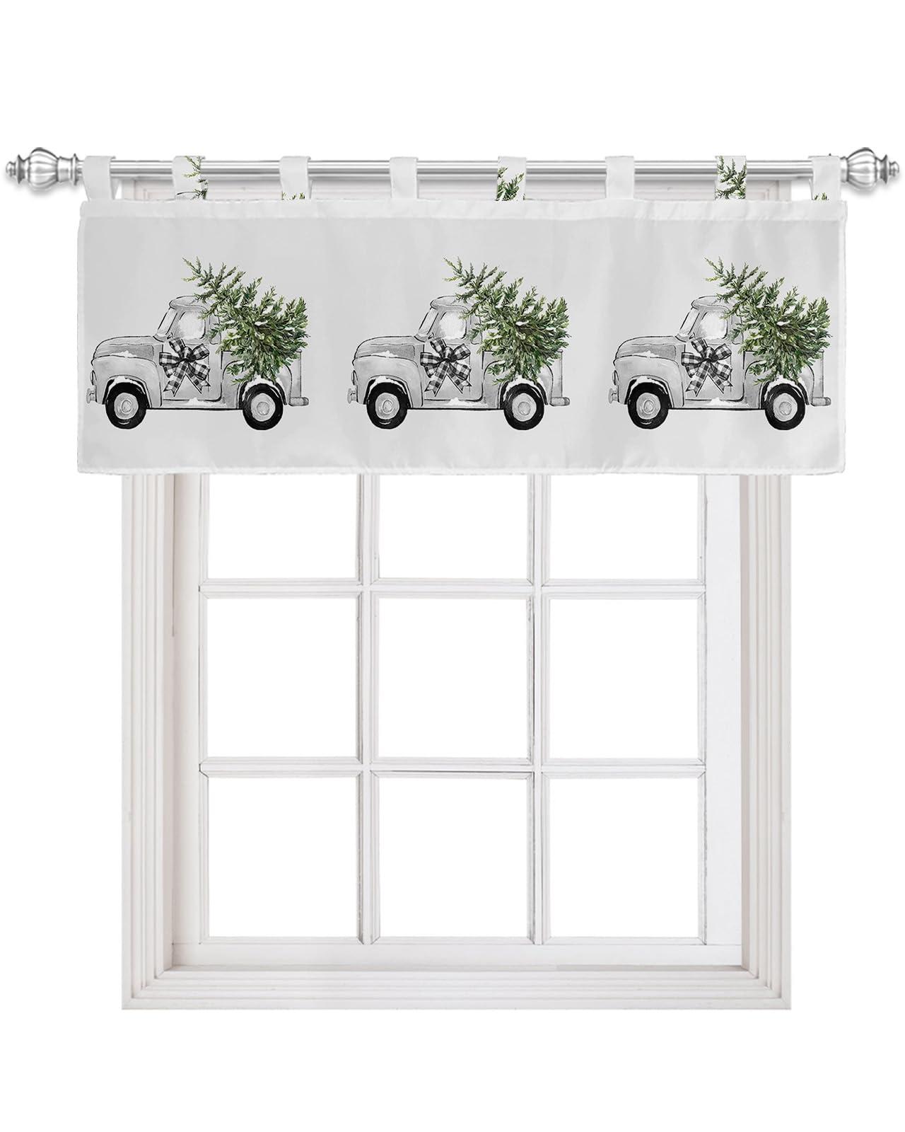 - Easy To InstallWindow valances for kitchen measures 54 '' x 18 '' (including the length of the top tab). Package includes: 1 x tab top curtain + 1 x strap(13.7'' x 2''). Each panel contains 8 top pull tabs, making tab top valence kitchen beautiful and easy to install and slide. The tab top design easily mounts to standard curtain rods up to 3 inches in diameter or can be mounted on hooks and nails. Hook and loop tape kitchen curtains for window have adjustable straps for easy hanging.