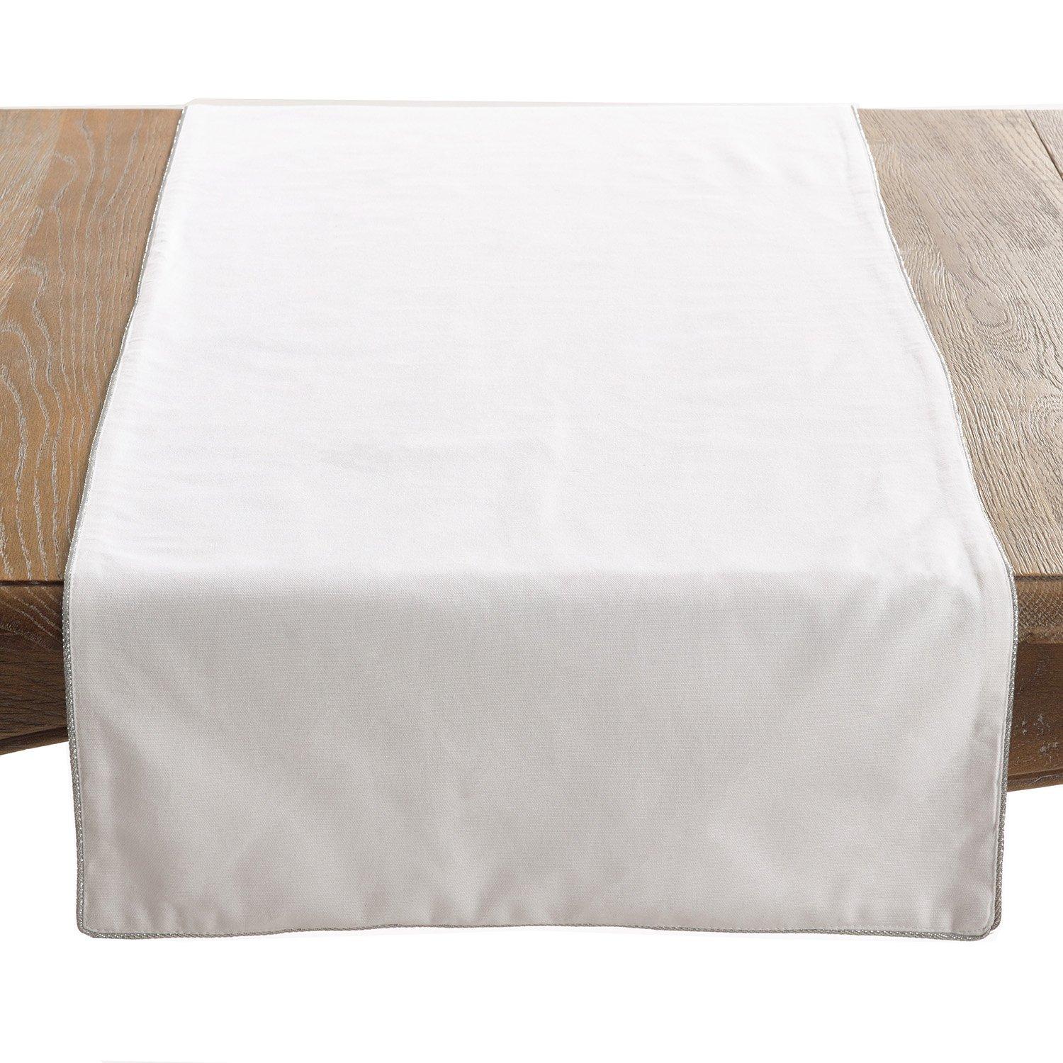 Classic Ivory White Table Runner with Shimmering Silver Border Trim 18" x 72" Rectangle