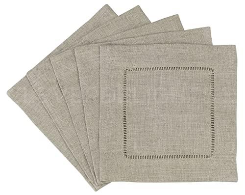 - Set of 12 cocktail napkins - Natural linen color - Stylish 6 inch napkins with ladder hemstitch and mitered corners