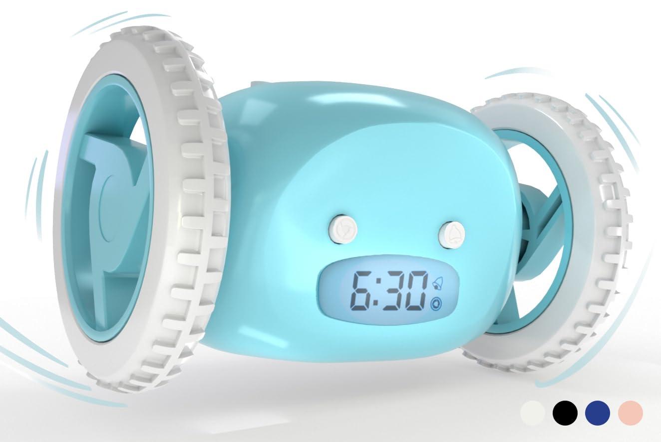 - Runaway Alarm Clock on Wheels - Extra super loud alarm clock jumps and rolls away unless you turn off its wheels