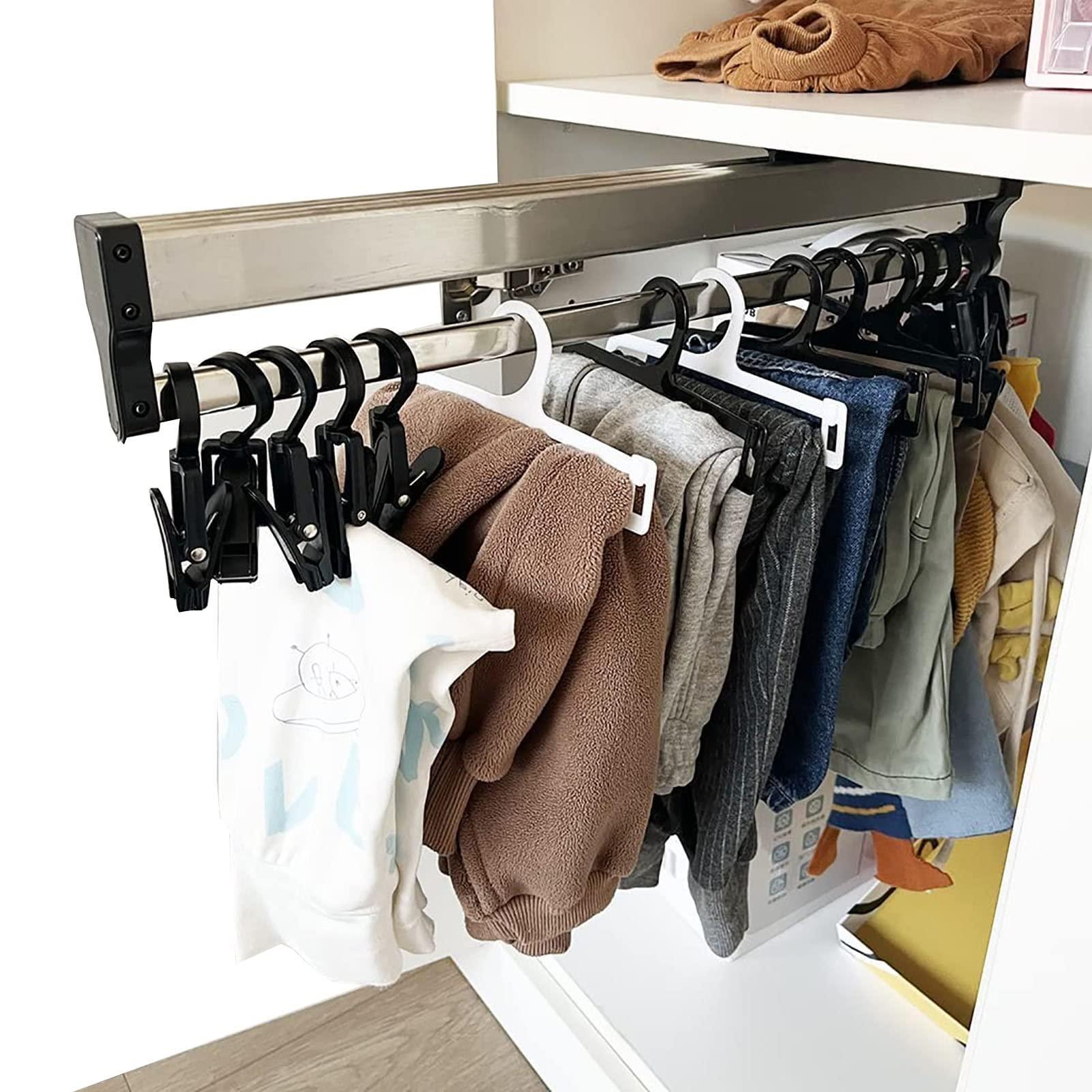- Widely Use:Pull Out Clothes Hanger is suitable for wardrobes and storage areas, also works well in kitchens or bathrooms, It makes maximum use of the space.