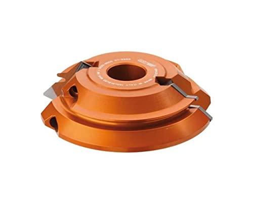 CMT lock miter cutter head bits are ideal for milling miter joints in max 1 stock. The quick and easy way to accurately create boxes, stretcher bars, frames and any assortment of right angle or parallel joint projects. The lock miter cutter head produces perfectly fitting 45 degree degree miter joints in two steps. First, make the cut with the workpiece in the horizontal position then make the cut with the workpiece in the vertical position. By cutting boards in the horizontal position - first with the inside face down and then with the inside face up - you can mill rock solid parallel glue joints. Excellent results in most materials but ideal in solid wood and in coated and uncoated man made materials. Tool features heavy duty aircraft aluminum body, 2 solid carbide knives, manual feed and pins for the automatic positioning of the knives.