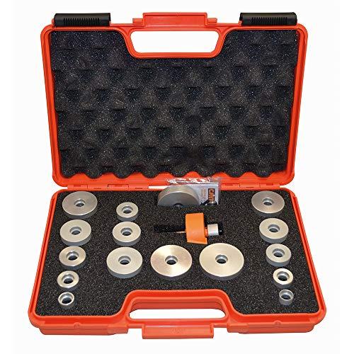 The ultimate rabbeting set! Supplied in a sturdy molded case, this set includes a 1/2-Inch rabbeting bit to produce a 7/8-Inch cutting length and a 5/8-Inch cutting depth, two 2-Inch collars for flush trimming and 15 collars to produce rabbets of different sizes. This bit features super-strength superior steel body, Non-Stick Orange Shield Coating and cutting edges made of SinterHip Hi-Density Industrial Chrome Carbide for a long-lasting performance. After a test performed by Wood Magazine, CMT orange bits have been rated the first overall router bits compared to other brands.