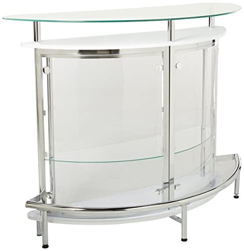 - [Entertainer's Delight] Add flair with a home bar table that offers a stylish twist on traditional designs. This bar station for the home is ideal for entertaining, while the chrome and clear bar finish adds a contemporary touch. Perfect for those seeking versatile bars for the home or unique stall bars for their home setups.