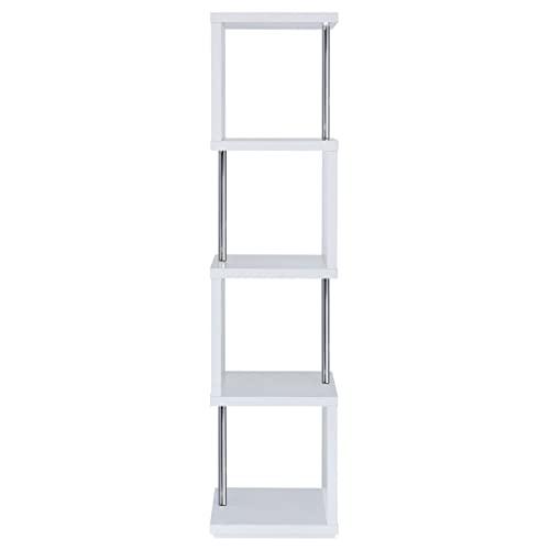 Go with the flow in a modern space with an edgy, artistic look. This four-tier bookcase is a great option for a compact space. Enjoy a modular, geometric silhouette and a choice of finishes. Steel supports reinforce shelving that hosts books and decor. Choose from finishes that intensify the attitude of your custom space.