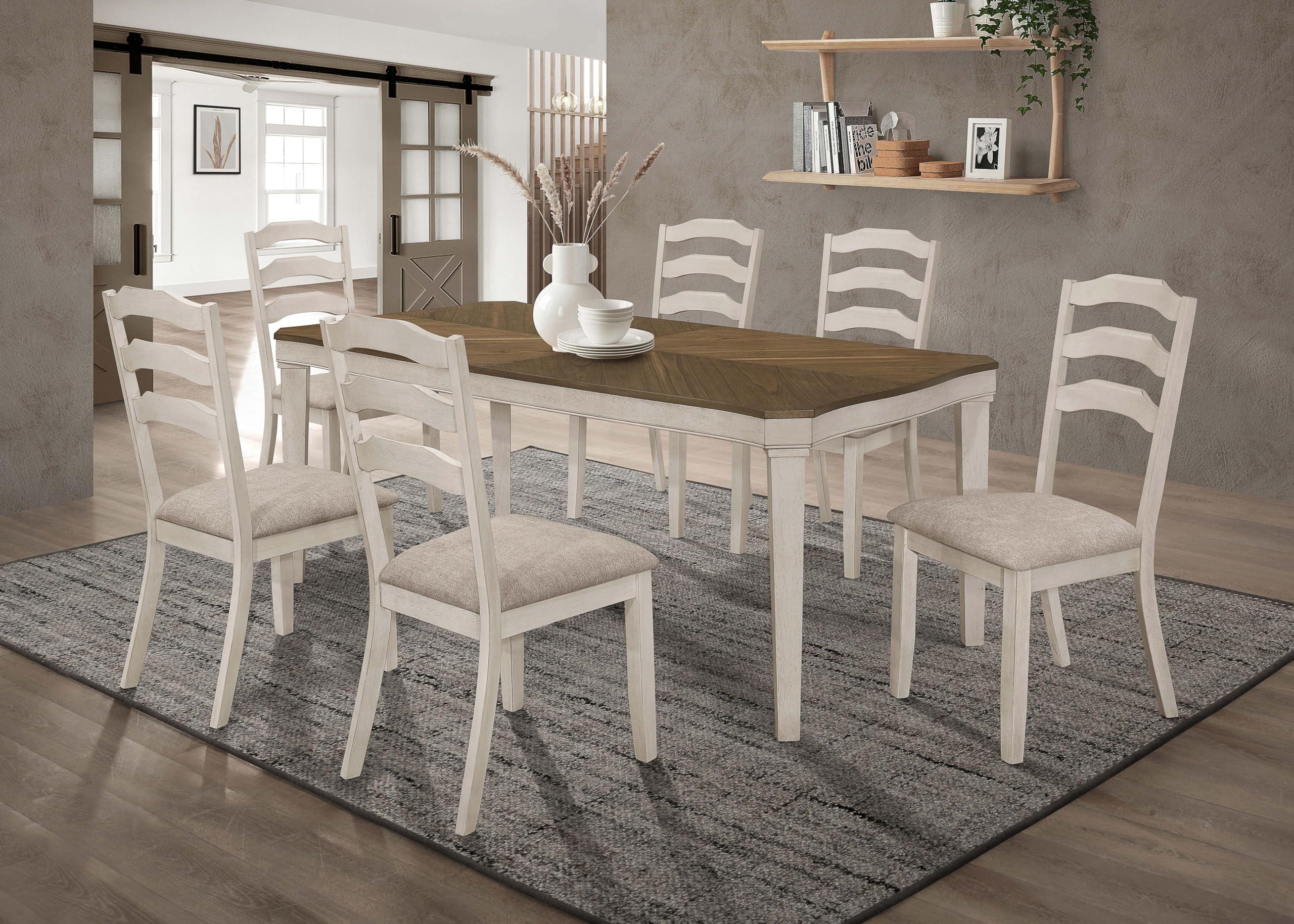 Coaster Ronnie 7-Piece Wood Starburst Dining Table Set in Khaki and Rustic Cream