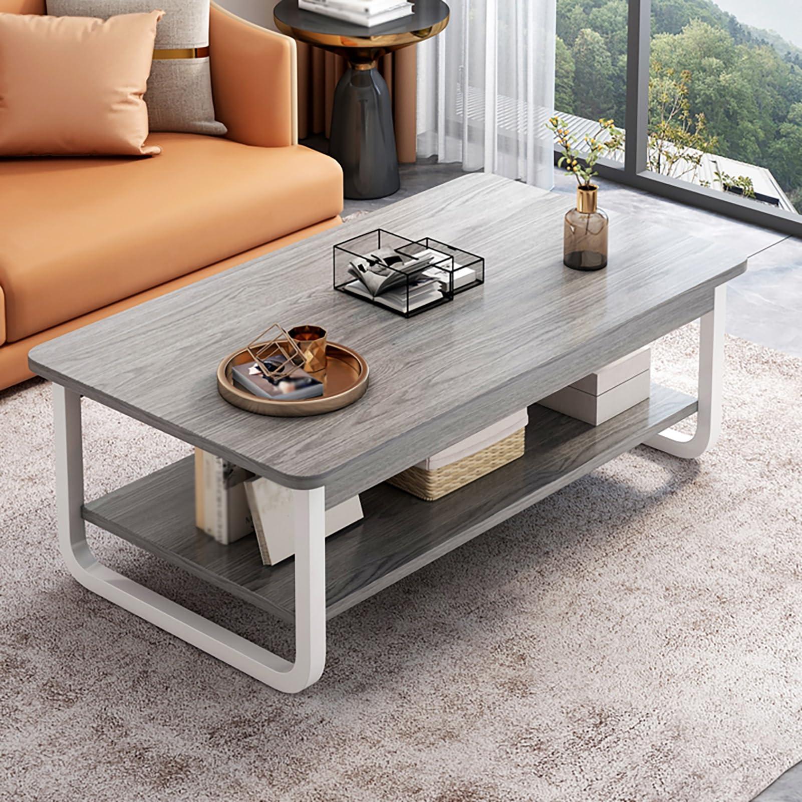 - Large Capacity Storage: The coffee table has 2-layer desktop, which can be used to place living room items such as cups, books, tissues, toys and various items.