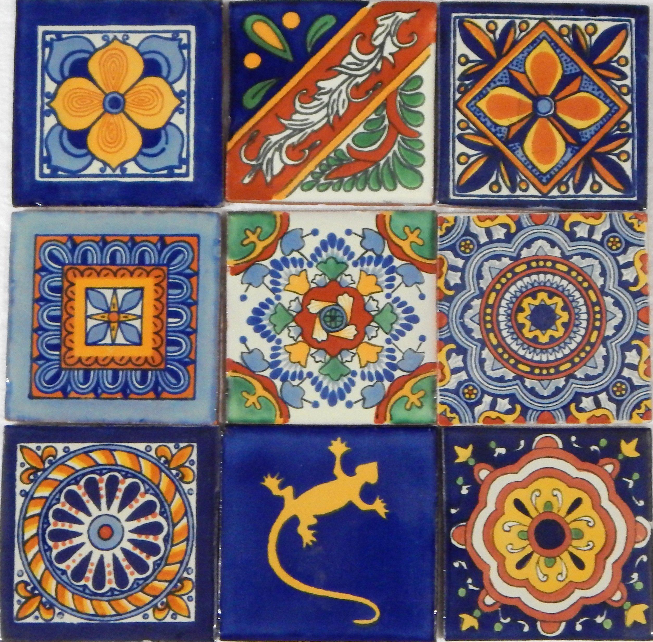 9 Mexican Talavera Tiles on 4x4" made in Mexico the same as the picture. Tiles may present slight variations on color, designs and size due to its handmade process. These are not seconds. Tiles are not FROST PROOF. Tiles are suitable for bathroom walls, counter tops, backsplash, stairs, etc. No matter how big your order, we can fill it!