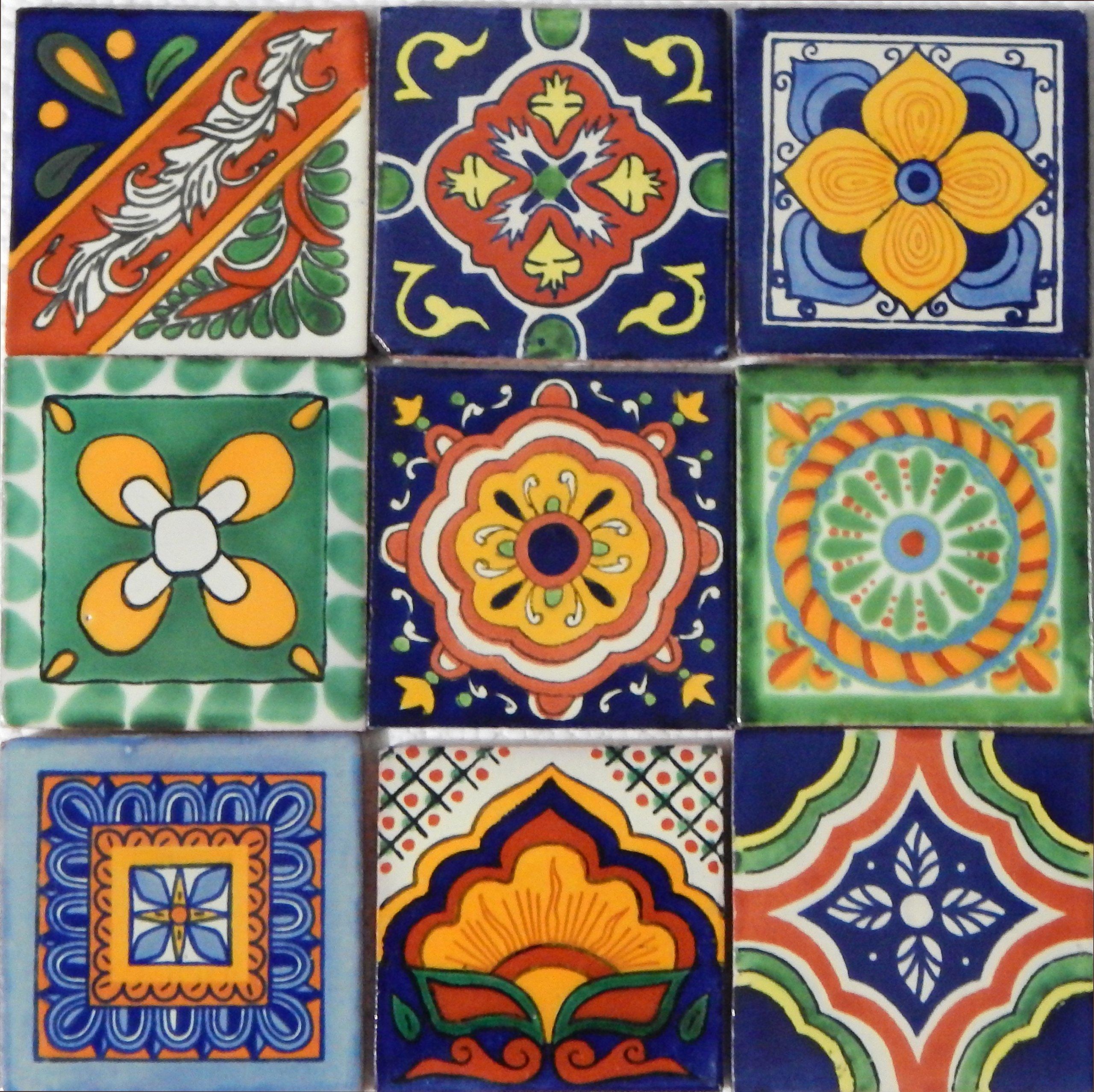 9 Mexican Talavera Tiles on 4x4" made in Mexico the same as the picture. Tiles may present slight variations on color, designs and size due to its handmade process. These are not seconds. Tiles are not FROST PROOF. Tiles are suitable for bathroom walls, counter tops, backsplash, stairs, etc. No matter how big your order, we can fill it!