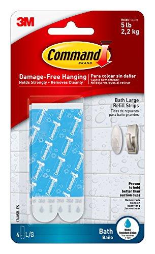 Command Assorted Water Resistant Refill Strips make it easy to move and rehang your Command Bath Products for cleaning, redecoration or reorganization. Like all Command Products, they stick to many surfaces, including glass, mirror, tile, fiberglass, wood and painted surfaces. Yet they also come off leaving no holes, marks, sticky residue or stains. Command Assorted Water Resistant Refill Strips come in both medium and large sizes.