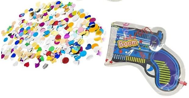 Refillable Confetti Gun is Fun for any party, these Confetti Party Poppers release a stream of colorful foil paper when you pull the trigger. The Party Poppers operate with compressed air, not explosives, and can be used indoors or out to get everyone involved. Children & Adults will fall in love with the beautiful show of confetti. The slow-falling confetti creates an effect that lasts for several seconds after the pop! Create Spectacular Confetti Shots Photographers love using our cotillon confetti Guns to capture unique and special memories. These Guns Shoots up to 10 ft. Entertain Friends and Family Indoors or outdoors your guests will have a blast with these confetti cannons. Cleanup is quick and easy with a broom on clean flat surfaces. Have Some Confetti Fun! Sometimes you just want to celebrate on your own, and our confetti poppers are perfect for solo celebrations too! Birthdays, Anniversaries, and Special Days Our confetti Guns with Refill are perfect for celebrating these milestones. Whether your party is just family and friends, or something bigger with a bunch of guests, theses poppers will add the perfect element of excitement! Graduations, Promotions, Business Milestones Every milestone is worth celebrating. Whether its graduation from 1st grade or medical school, add confetti to make it POP! Confetti cannons are also perfect for job promotions, or to celebrate business growth milestones, New Years, Fourth of July, Memorial Day, wedding engagement parties, bachelor or bachelorette parties, quinceaneras, mardi gras, Holiday parties are some of the best times to spread joy and have fun with our loved ones. Confetti poppers will undoubtedly create an exciting and happy atmosphere. Warning: Never point or shoot at anyone specially at the Eyes or Face.
