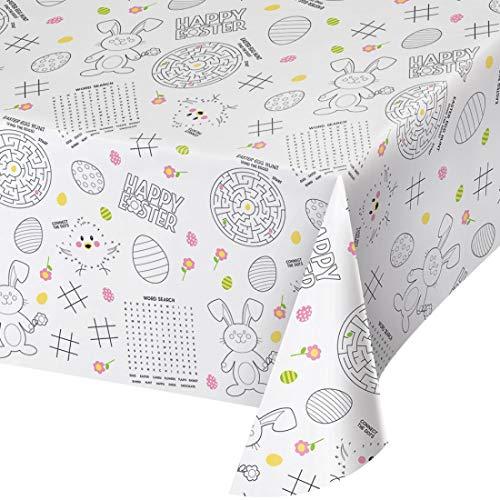 Bring your table to life with this Easter activity table cover! Featuring uncolored Easter designs that are perfect for coloring in, this table cover is the perfect addition to your party! Measuring 54" x 88" and sold individually, This table cover pairs well with any other Easter party supplies.