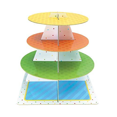 This practical and ornamental treat strand really takes the cupcake! This Birthday Stripes Treat Stand will 'stand' on its own at any b-day bash. This 10.75"X10.75" circular treat stand shines in its bright pastel hues and holds up to 24 cupcakes. Each stand kit includes a base, a top tier, a middle tier, a bottom tier, and a tower with 2 leg pieces. Includes 1 kit in a package.