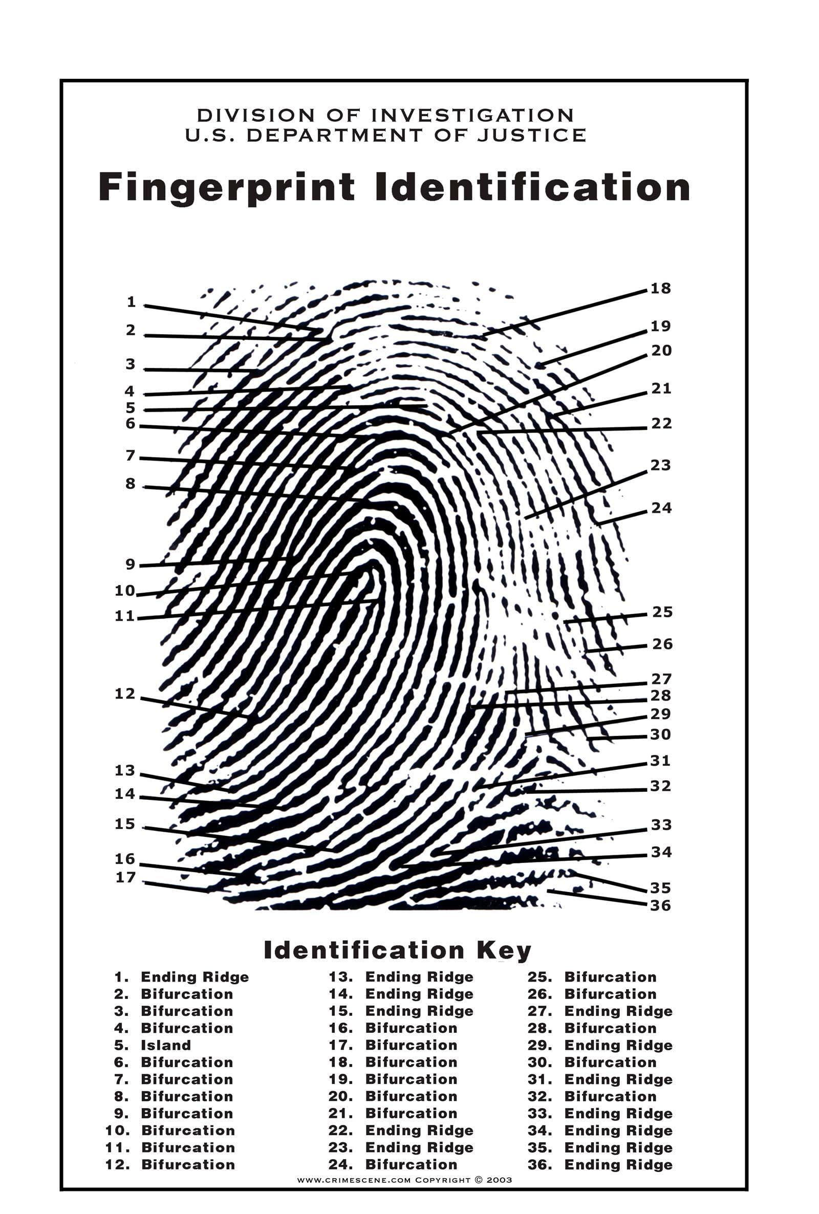 - This poster shows ridge characteristics or minutiae, used to match fingerprints. The most common ridge characteristics are bifurcations, ridge endings, and islands.