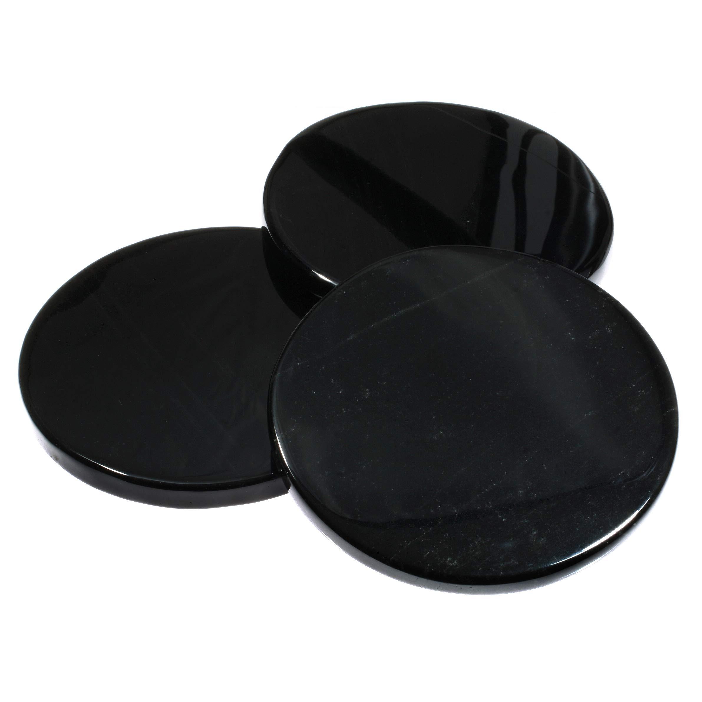 This beautiful Obsidian Scrying Mirror is a great addition to your healing crystal collection. The fine, reflective surface of obsidian lends itself wonderfully to scrying and divination. Scrying is the practice of divining the past, present and future in smooth, reflective surfaces. The natural beauty of obsidian produces remarkable scrying surfaces. Obsidian is also said to ground spiritual energy and dissolve shock and fear, helpful qualities in divination of any kind. This is a natural product therefore it will have natural marbling in the stone. Size approximately 100-110mm. Product Code: TOB3 Size: Height: 11cm (4.3") Width: 11cm (4.3") Birth Signs: Capricorn December 21st - January 19th Chakra: Root (Muladhar or Base Chakra) Colour: Black (More Black Products) Stone Types: Obsidian