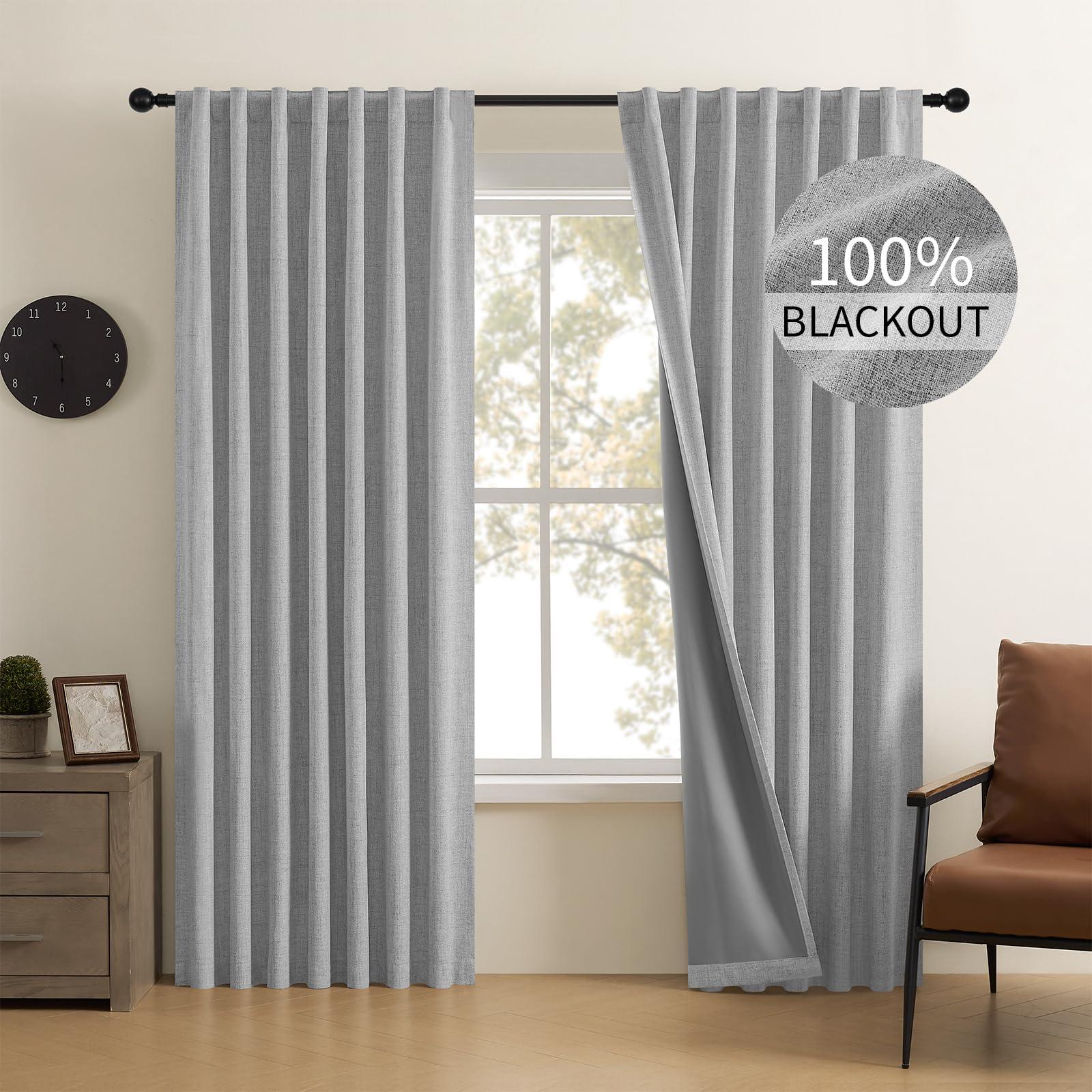 - 100% Black out & Sun Blocking & Soundproof: Triple woven faux linen textured soft fabric, blocking light and UV rays. keep the room dark and reduce the noise, you can have a good rest and a safe privacy space