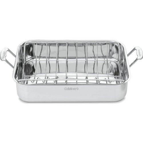 - EXCEPTIONAL DESIGN: The Cuisinart 16-inch rectangular roaster is made with a high-performance stainless steel exterior and riveted stainless steel handles. The steel rack is large enough to handle a big Thanksgiving turkey and perfect for slow-roasting root vegetables