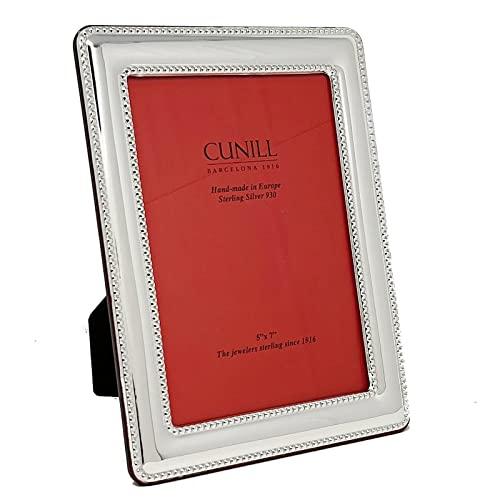 The Rounded Bead Frame from Cunill is handcrafted of the finest .925 sterling silver, for the utmost of elegance, and holds a 5x7 photo, either vertical or horizontal. The corners are gently rounded, the sides are rounded, and the frame gets its name from the bead design around both the outside and inside of the frame. The back and easel are genuine wood from sustainable forests in Africa.