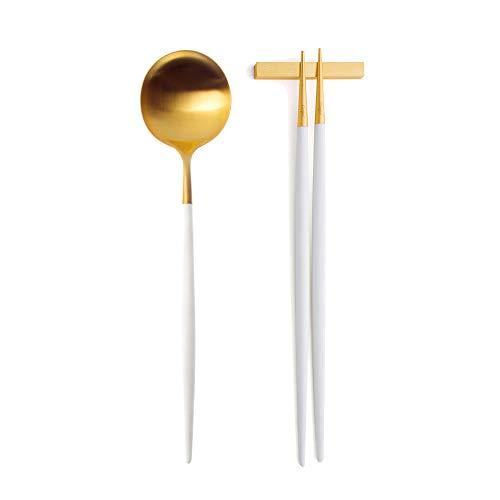 Cutipol GOA White And Gold Series Home Flatware Cutlery Dinner Set of 4pcs, composed of Spoon ,Chopstick and Holder