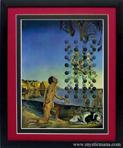 Framed Art Print & Display Art by Salvador Dali Details: Measurements: 12x15 (framed) Moulding:Professional 1" Flat Top Black (soldid-wood) Print: Bonded & Dry-mounted Dali Calendar Print Matting: Double Matted Burgundy & Black About The Artist: Salvador Domingo Felipe Jacinto Dal i Domnech, 1st Marquis of Pbol (May 11, 1904 January 23, 1989) was a Spanish Catalan surrealist painter born in Figueres. Dal was a skilled draftsman, best known for the striking and bizarre images in his surrealist work. His painterly skills are often attributed to the influence of Renaissance masters.[1][2] His best-known work, The Persistence of Memory, was completed in 1931. Dal's expansive artistic repertoire includes film, sculpture, and photography in collaboration with a range of artists in a variety of mediums. Dal attributed his "love of everything that is gilded and excessive, my passion for luxury and my love of oriental clothes"[3] to a self-styled "Arab lineage," claiming that his ancestors were descended from the Moors. Widely considered to be greatly imaginative, Dal had an affinity for partaking in unusual behavior to draw attention to himself. This sometimes irked those who loved his art as much as it annoyed his critics, since his eccentric manner sometimes drew more public attention than his artwork.[4] --wikipedia
