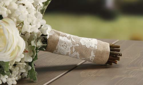 Burlap and lace bouquet wrap is wonderful for adding charm to your rustic wedding or special occasion. Make the statement with your wedding flowers with this bouquet wrap. Velcro closure. Wrap measures 5.5 inches by 8.5 inches, with 1 piece per package. 5.5 inches by 8.5 inches Velcro Closure Burlap with Cream Lace
