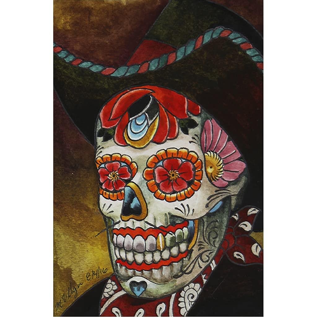 Black Market Art Company Day of the Dead Cowboy by Marcos Villagran Western Sugar Skull Wall Art Print