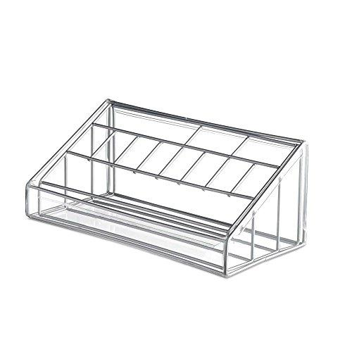 Makeup organization has never looked so good. With a glance, this clear makeup organizer allows you to see all your favorite nail polish color options before making your selection. The compact organizer keeps all your brushes, mascara, lipstick and all of the above visibly accessible and orderly for quick and easy use. Place it on your bathroom countertop or dresser to instantly make your counters neater and open up more space. Never lose your makeup in the bottom of a bag again.