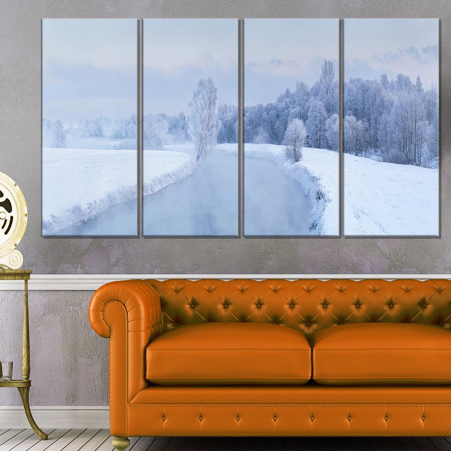 Bring contemporary abstraction to your home with this large metal wall art. Available in several size, this Blue frosty winter weather Panorama modern metal artwork makes it the focal point of any room or office