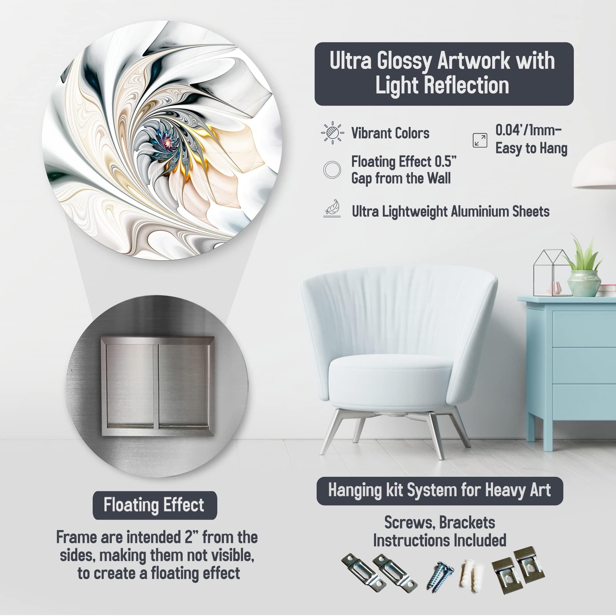 - Aluminum grade sheet metal with 1 inch mounting frame on the back giving the illusion that the Artwork is floating on the wall. Mounting brackets are included along with instructions