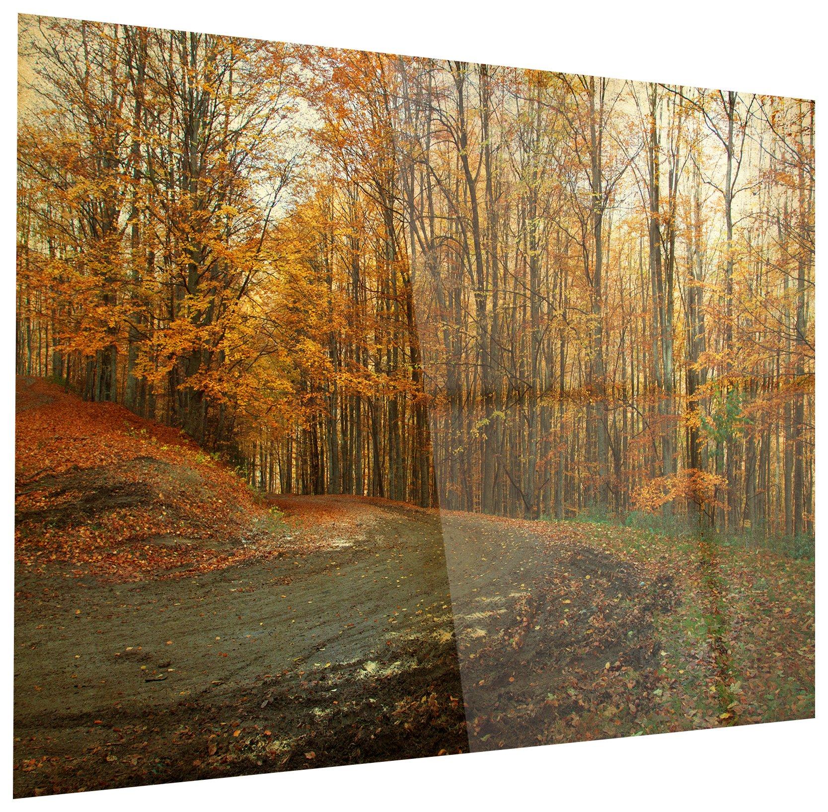 Designart MT14235-40-30 Curving Road in Autumn Forest - Large Forest Glossy Metal Wall Art - 40x30,Brown,40x30