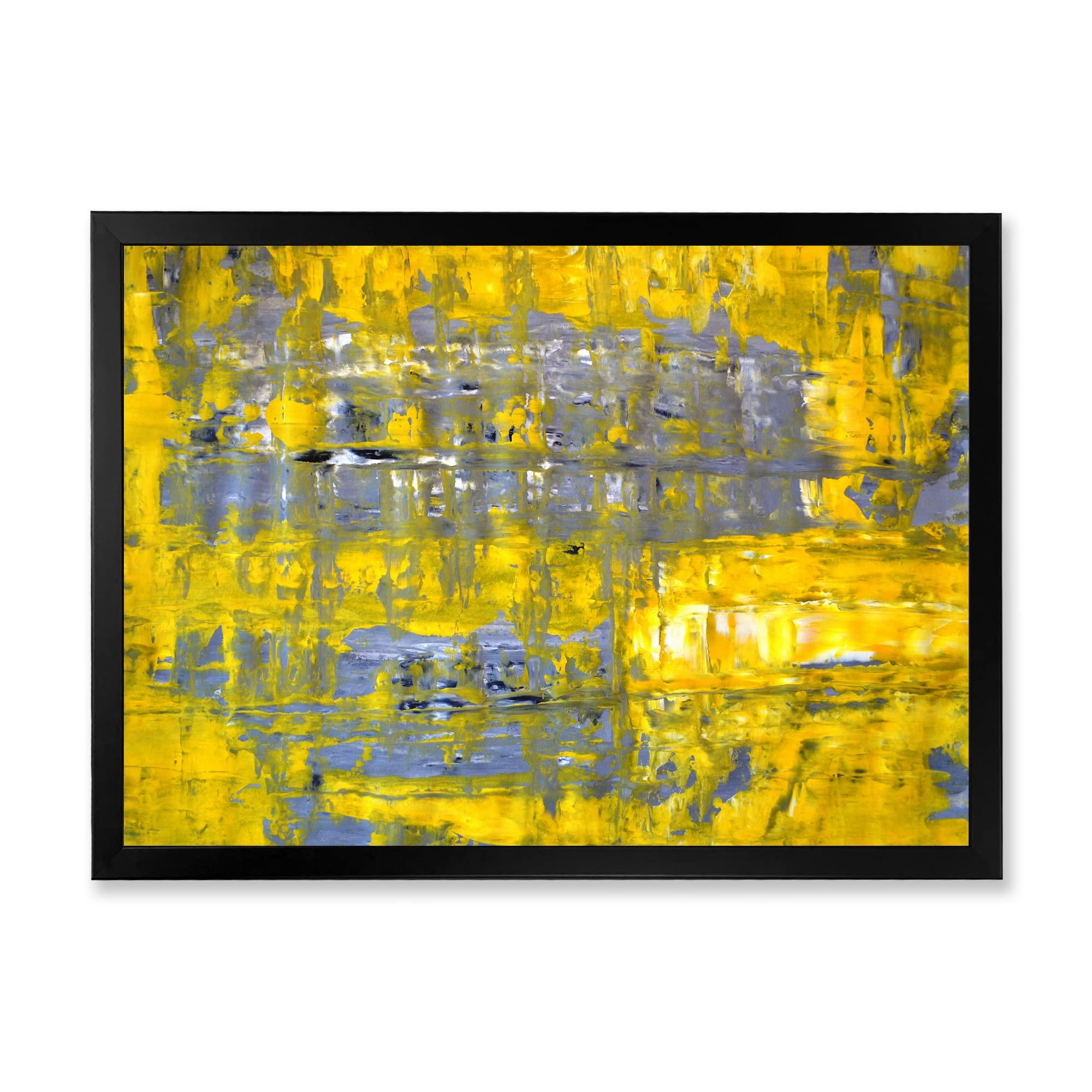 DesignQ Yellow Meets Grey Abstract Art I Modern Framed Wall Art