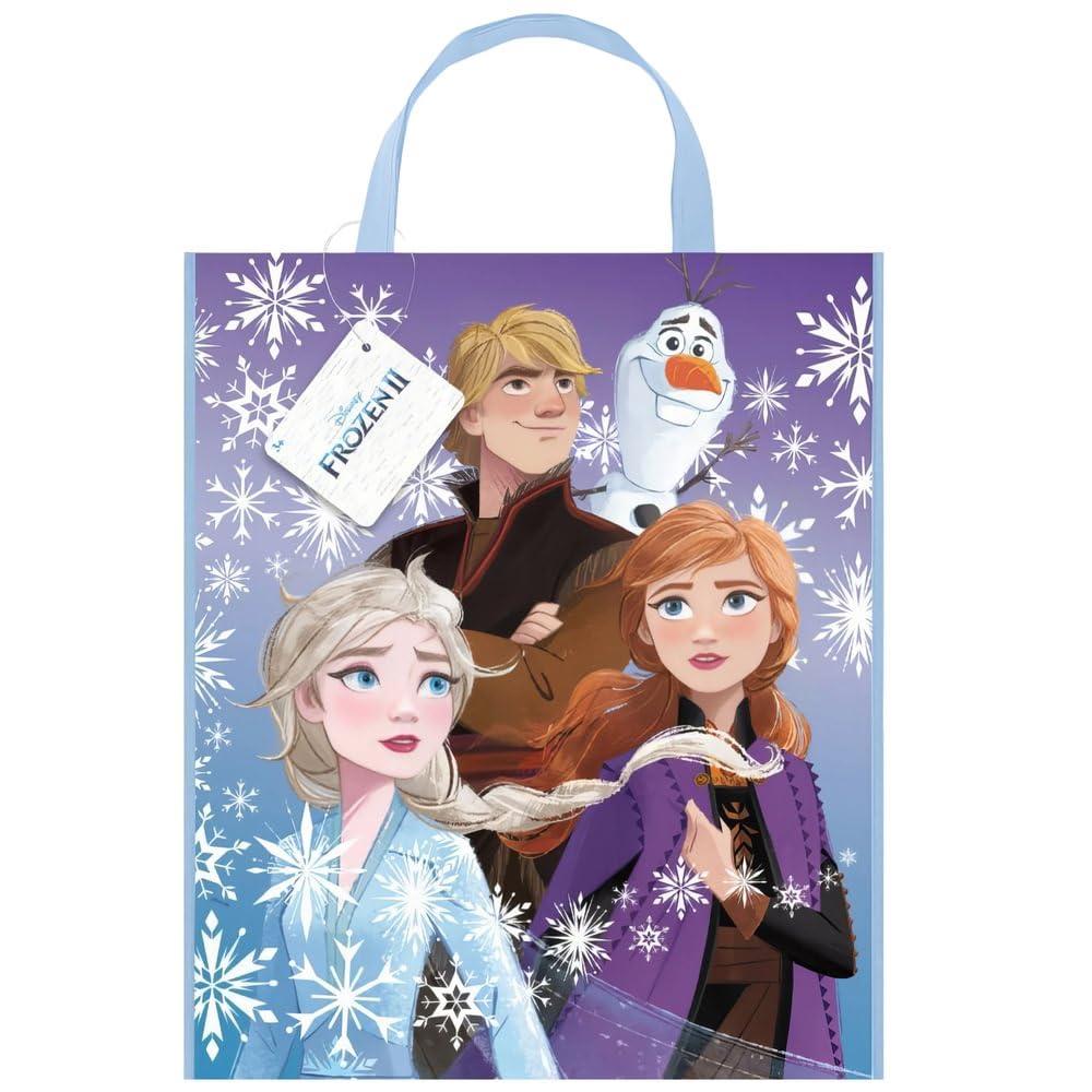 Surprise your little one with this cute Frozen 2 plastic tote bag! Featuring Elsa, Olaf, Anna and Kristoff, it makes a wonderful addition to Frozen party supplies! They'll be able to carry it around like a purse or to carry some of their favorite things from one place to another.