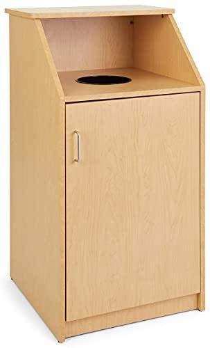 This waste receptacle with melamine finish in Maple has a contemporary look that looks stylish in fast food chains, restaurants, and office building common areas. Each of these trash cans will hold up to 36 gallons in waste. The hinged door with silver handle makes it quick and easy to change out the bin when it's full. This industrial-grade trash container has a 7.875 inch circular opening that keeps garbage out of view. This waste receptacle with melamine finish is used in fast food restaurants and common areas in office buildings, malls, and more. This waste receptacle with melamine finish is super durable with a 21.8 inch W x 13.4 inch d top shelf for stacking trays. This garbage collection system measures 22.5 inch W x 45 inch H x 23.5 inch d overall.