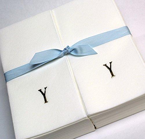 100 (2 50ct packages) Nature's Linen (paper) Disposable Guest Hand Towels wrapped with a ribbon, This 100ct. bulk pack of paper quest hand towels are personalized with a single block initial in gold foil. Our Guest hand towels are great for adding that personal touch to your guest bath. Indulge your guests with this personal touch of luxury. They also make great gifts for a variety of occasions and events like: bridesmaid's gifts and favors, wedding favors, engagement party gifts, gifts or the mothers of the bride and groom, bridal shower gifts, baby shower gifts, anniversary gifts, birthdays, graduations, congratulations, thank you gifts, mothers and fathers day gifts, and of course any holiday celebration like Christmas, Thanksgiving, Easter, and more. Their uses are limited only by your imagination!