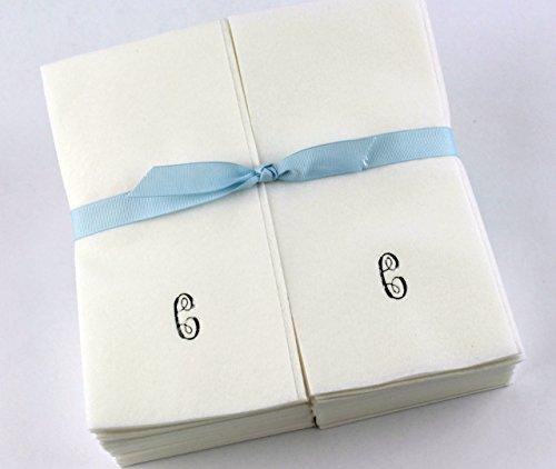 200 (4 50ct packages) Nature's Linen (paper) Disposable Guest Hand Towels wrapped with a ribbon, This 200ct. set of paper quest hand towels are personalized with a single script initial in silver foil. Our Guest hand towels are great for adding that personal touch to your guest bath. Indulge your guests with this personal touch of luxury. They also make great gifts for a variety of occasions and events like: bridesmaid's gifts and favors, wedding favors, engagement party gifts, gifts or the mothers of the bride and groom, bridal shower gifts, baby shower gifts, anniversary gifts, birthdays, graduations, congratulations, thank you gifts, mothers and fathers day gifts, and of course any holiday celebration like Christmas, Thanksgiving, Easter, and more. Their uses are limited only by your imagination!